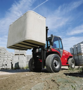 Die MC 40 und 50 Geländestapler von MANITOU wurden speziell für die Bewegung von schweren, langen und sperrigen Lasten im Außenbereich entwickelt und können selbst auf rutschigem oder unebenem Gelände sicher eingesetzt werden.