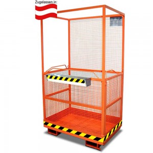 Der Arbeitskorb für Österreich bietet eine hohe Sicherheit bei Tätigkeiten in der Höhe, um z.B. Reparatur- oder Wartungsarbeiten zu verrichten. Er ist von maximal zwei Personen gleichzeitig nutzbar und kann mit ca. 170 kg inkl. Werkzeug beladen werden. Das Eigengewicht des Arbeitskorbes beläuft sich auf 132 kg. Die maximale Gesamtbelastung des Arbeitskorbes liegt bei 300 kg, wobei das Eigengewicht des Arbeitskorbes von diesem Gewicht abzuziehen ist.