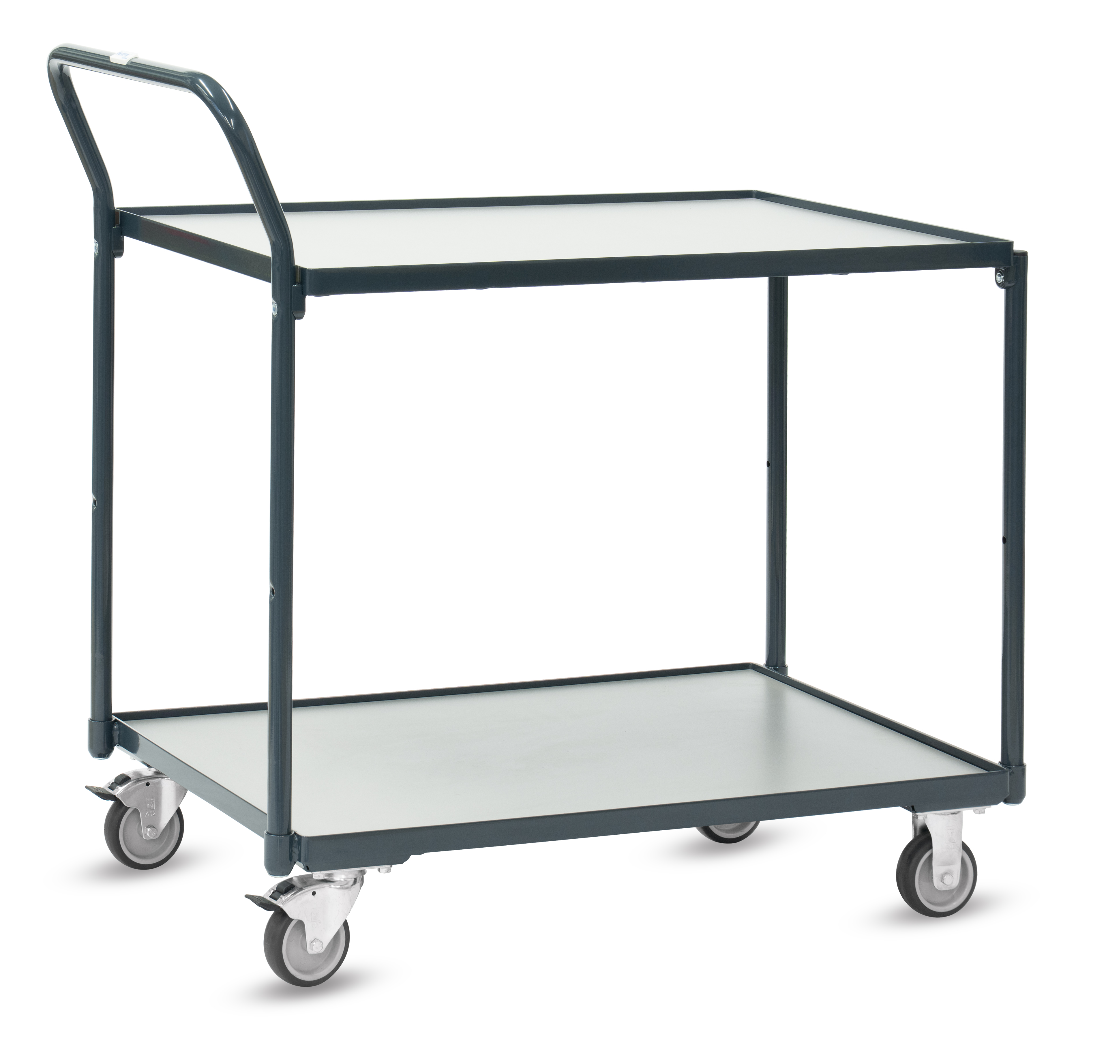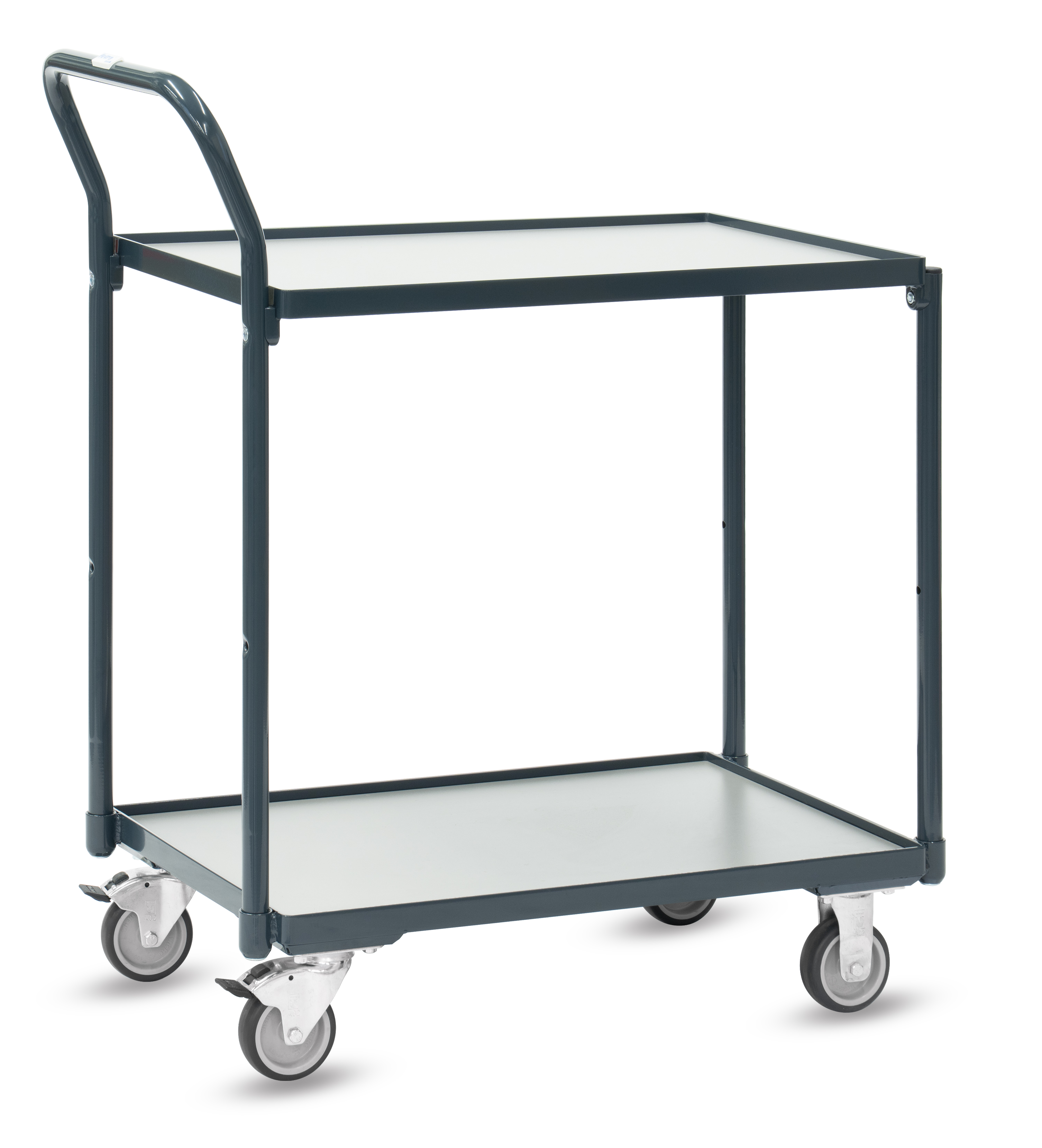 kompakter Tischwagen / Transportwagen "Basic" mit zwei Ebenen und hochstehendem Schiebebügel