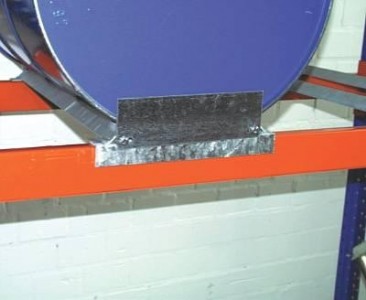Beim Material dieser Durchschubsicherung handelt es sich um verzinkten Stahl. Die Durchschubsicherung wird an die Rückseite des Regals montiert und bietet Platz zur Lagerung von 1 Stück Fass.