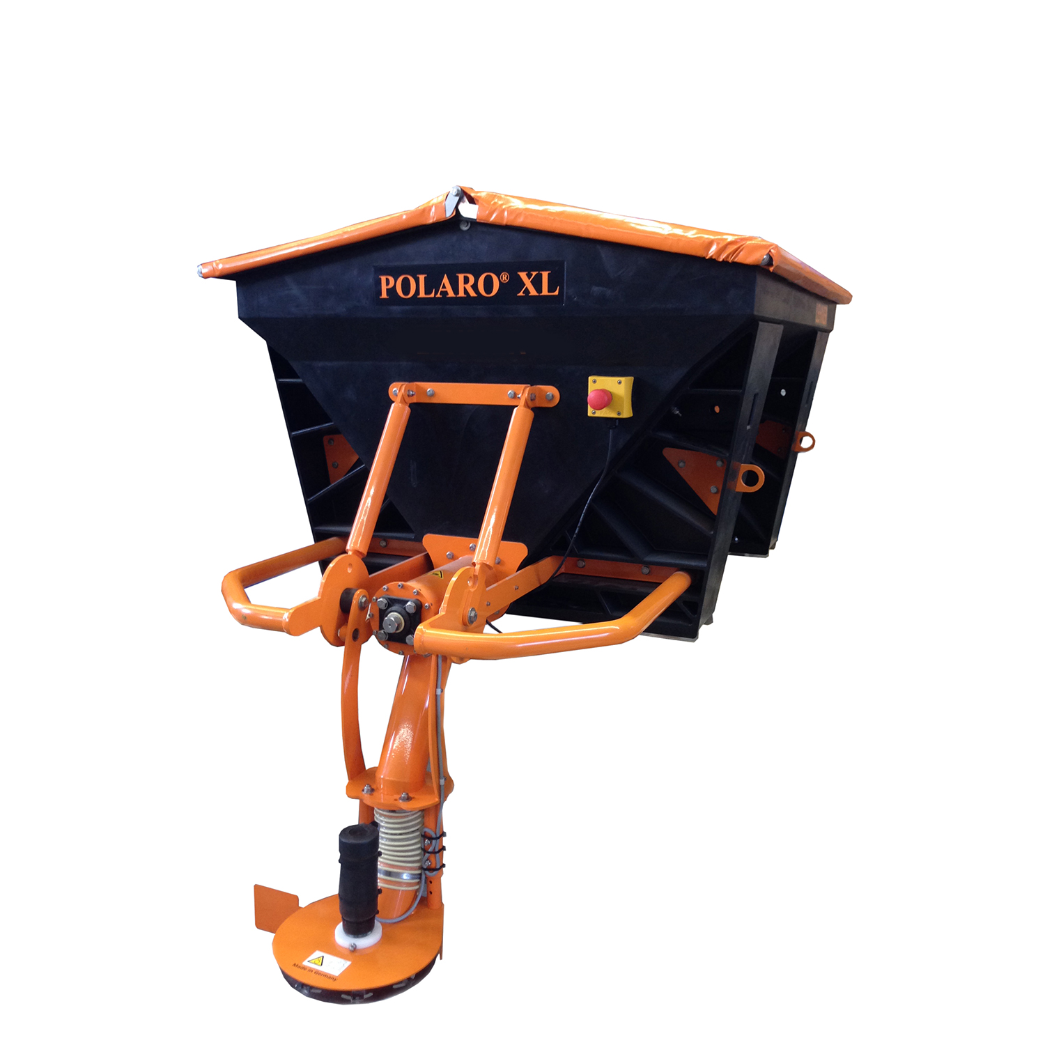 Dieses neuartige Streugerät ist speziell für den Gebrauch auf Pritschenwagen entwickelt worden. Es gehört zu den 12/24 Volt Streugeräten und kann nicht nur im Winter zum Streuen von Salz verwendet, sondern ebenso in den warmen Jahreszeiten zum Ausbringen von Saatgut, Dünger oder Rollsplitt eingesetzt werden. Das Streugerät ist durch ein 5m langes Kabel mit dem Bedienteil verbunden. So kann der Fahrer die Streubreite und die Streumenge ganz bequem und ohne lästiges Aussteigen von der Fahrerkabine aus regulieren. Auch der Aufgabepunkt des Streuguts auf den Streuteller und die Abgabehöhe des Streuguts können so bei Bedarf verändert werden. Normalerweise wird das Streugut, welches sich im Streubehälter befindet, über eine Förderschnecke transportiert, so dass ein gleichmäßiger Fluss gewährleistet wird. Kommt es aber doch einmal zu einer Brückenbildung (zum Beispiel beim Streusalz, Dünger oder Ähnlichem), infolge derer Sie nicht mehr arbeiten können, sorgt ein eingebauter Rüttler automatisch für Abhilfe. Über andere eventuell auftretende Probleme oder Hilfestellungen werden Sie, dank des im Bedienteil eingebauten Displays, direkt informiert. Das Behältervolumen liegt bei 380L beim Polaro L und 550L beim Polaro XL.